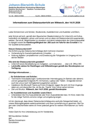 Für alle Klassen, die am Mittwoch, dem 14.01.2026 regulär Unterricht haben, findet dieser in Distanzform statt.
